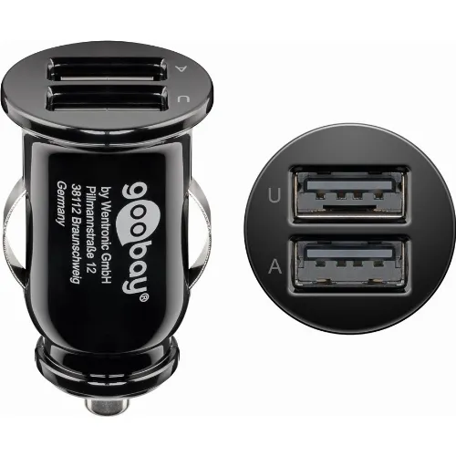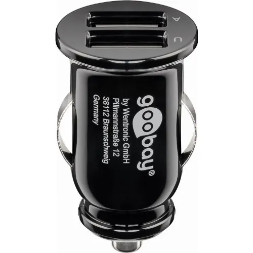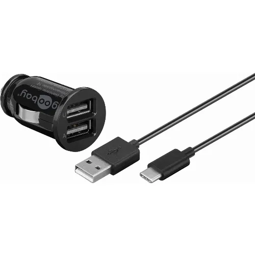 Goobay Dual USB laddare för bil USB-C™, USB-A (12 W) Laddningsadapter för bil med 2x USB-A och USB-C™-kabel 1,0 m (svart)