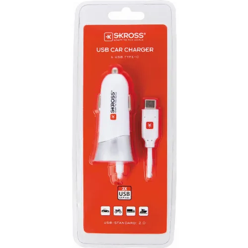 SKROSS USB-billaddare med Typ-C-kabel (2.0)