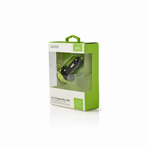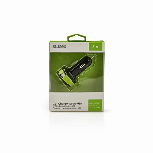 Sweex Billaddare 3-Utgångar 6 A 2 x USB / Micro USB Svart/Grön