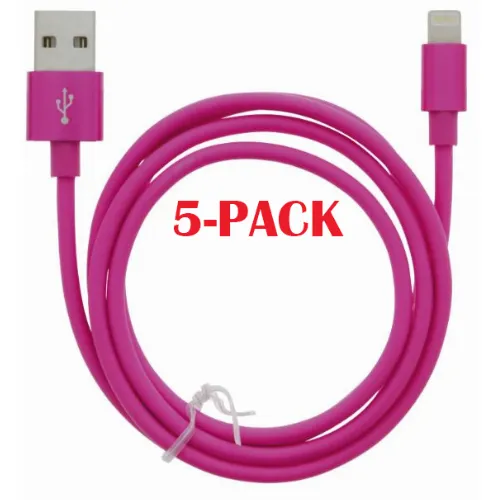 5-PACK Kabel USB-A - Lightning 2.4A, 1m, Rosa