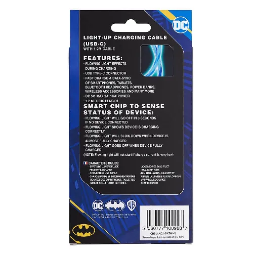 BATMAN USB A till C Light-Up 1,2m Bat Logo