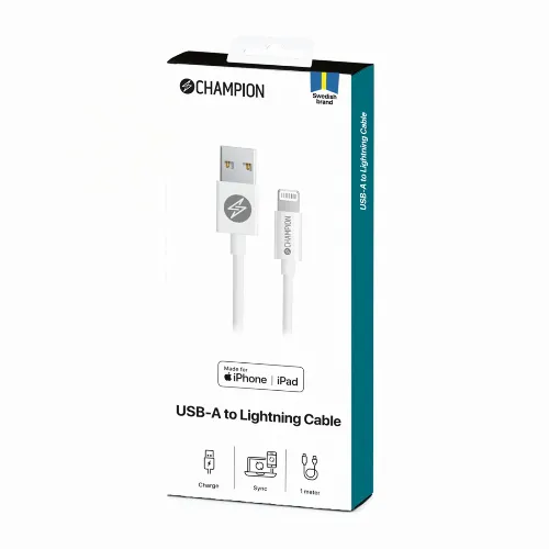 Champion USB-A till Lightning Kabel 1m Vit