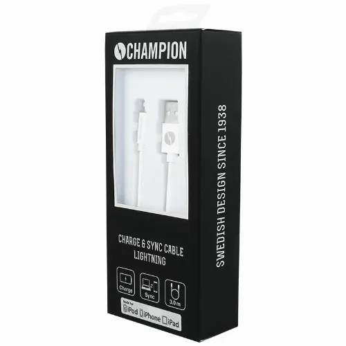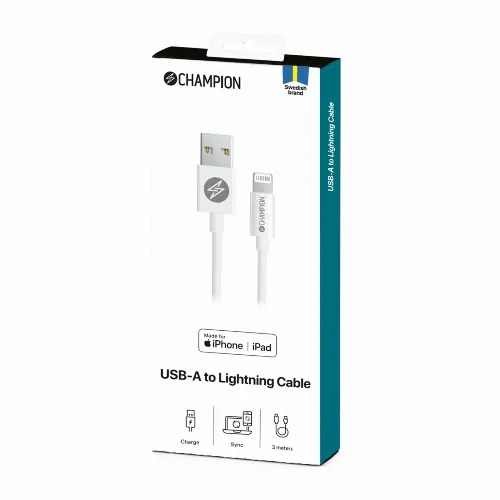 Champion USB-A till Lightning Kabel 3m Vit