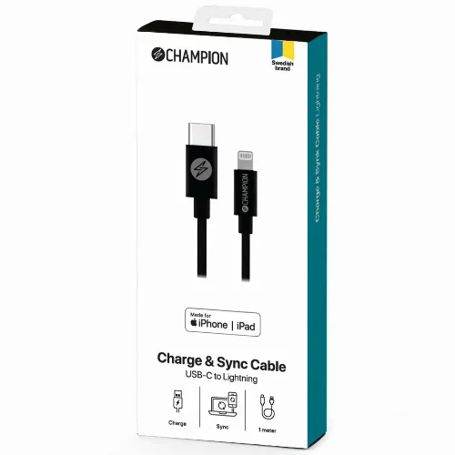Champion USB-C till Lightning Kabel 1m Svart