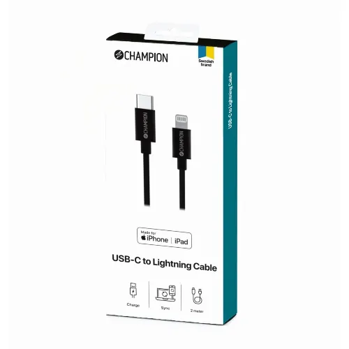 Champion USB-C till Lightning Kabel 2m Svart