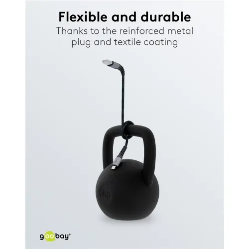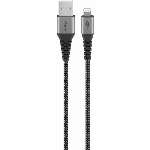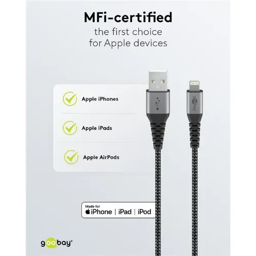 Goobay Lightning till USB-A-textilkabel med metallpluggar 1 m elegant och extra robust anslutningskabel för t.ex. Apple iPhone, iPad (Apple MFi certifierad)