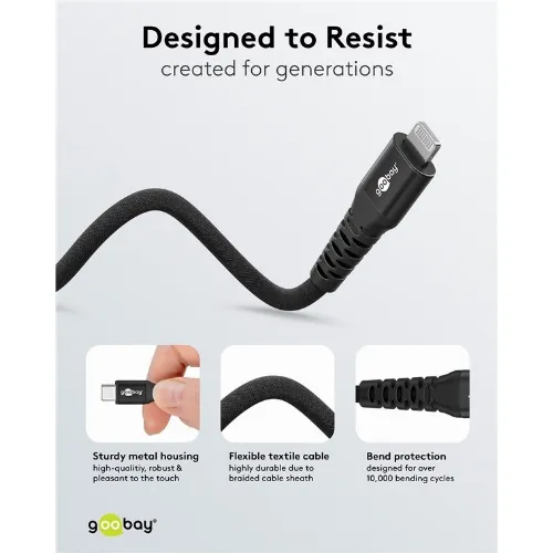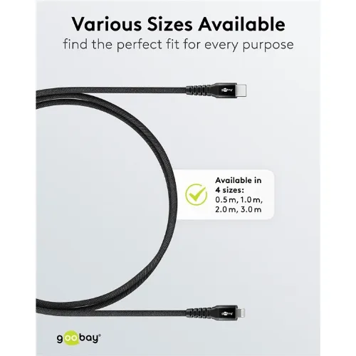 Goobay Lightning-USB-C™ supersoft textilkabel med metallkontakter, 1 m, svart MFi-certifierad, elegant och extra robust laddnings- och synkroniseringskabel för Apple iPhone/iPad (svart)
