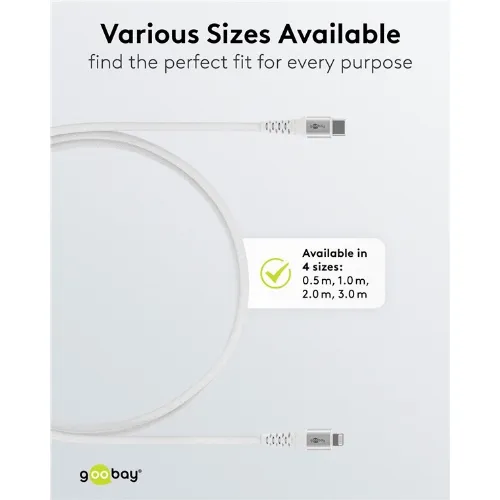 Goobay Lightning-USB-C™ supersoft textilkabel med metallkontakter, 1 m, vit MFi-certifierad, elegant och extra robust laddnings- och synkroniseringskabel för Apple iPhone/iPad (vit)