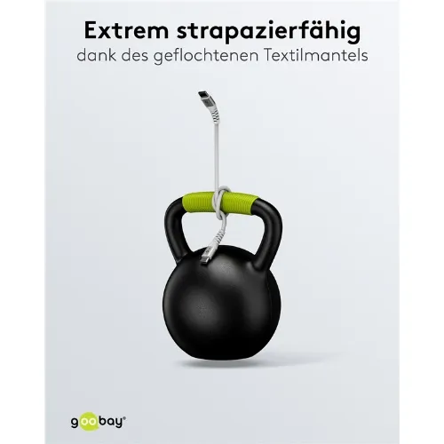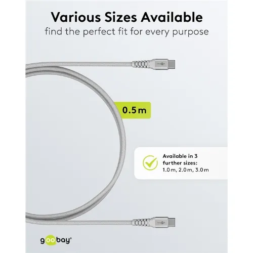 Goobay USB-C™ supersoft textilkabel med metallkontakter, 0,5 m, vit elegant och extra robust anslutningskabel för enheter med USB-C™-port