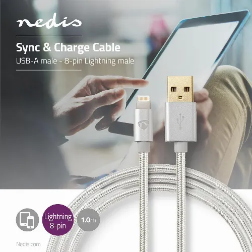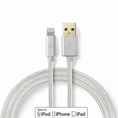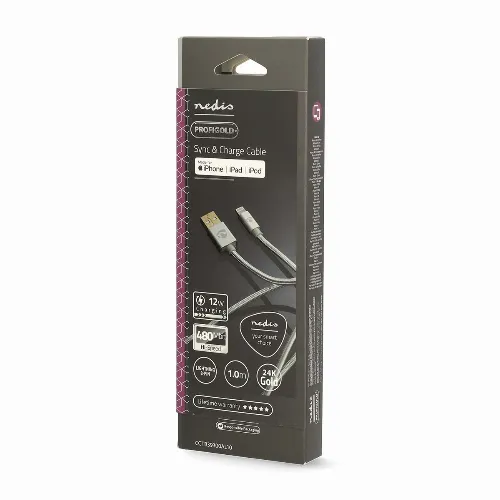 Nedis Lightning Kabel | USB 2.0 | Apple Lightning, 8-stifts | USB-A Hane | 480 Mbps | Guldplaterad | 1.00 m | Rund | Flätad / Nylon | Aluminium | Kartong med täckt fönster