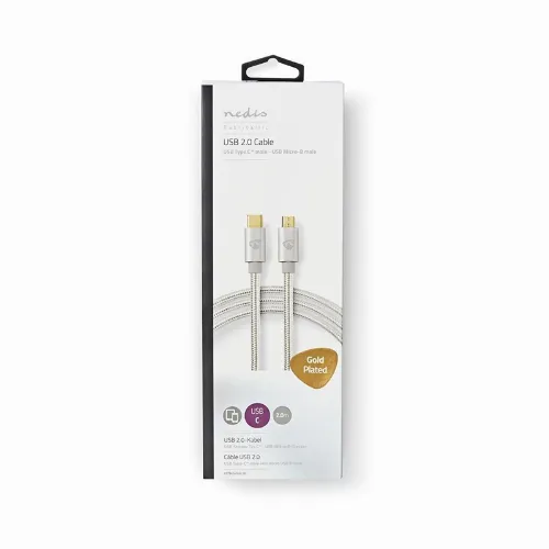 Nedis USB-kabel | USB 2.0 | USB-C™ Hane | USB Micro-B Hane | 10 W | 480 Mbps | Guldplaterad | 2.00 m | Rund | Flätad / Nylon | Aluminium | Kartong med täckt fönster