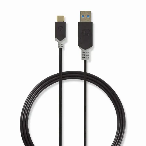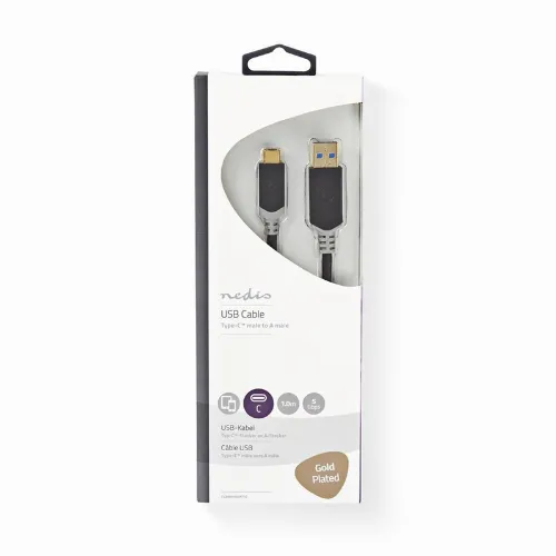 Nedis USB-kabel | USB 3.2 Gen 1 | USB-A Hane | USB-C™ Hane | 60 W | 5 Gbps | Guldplaterad | 1.00 m | Rund | PVC | Antracit | Kartong med fönster