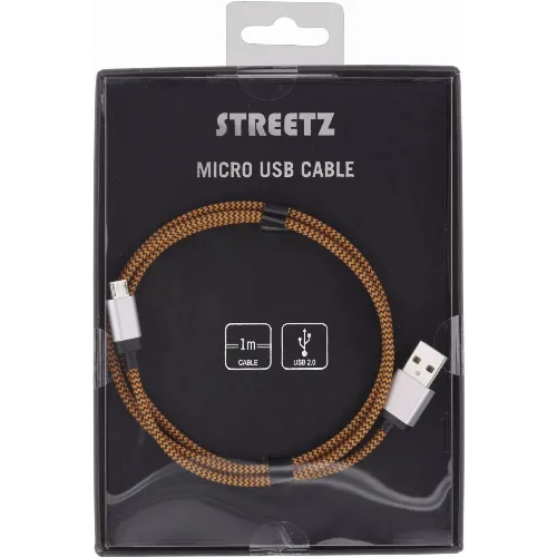 Streetz USB-kabel, Tygklädd, Typ A ha - Typ Micro B, 1m, orange (MICRO-116)