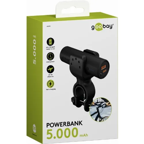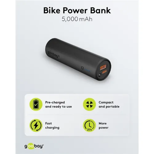 Goobay Bike powerbank 5.0 (5 000 mAh) liten, tunn och praktisk powerbank med en kapacitet på 5.000 mAh för montering på cykeln