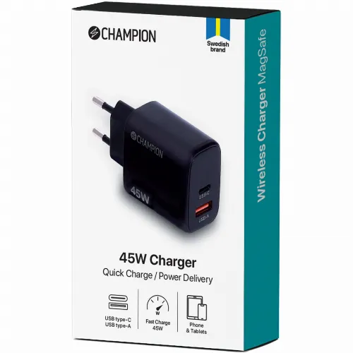 Champion Laddare 45W PD/QC Svart