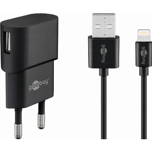 Goobay Apple Lightning laddningssats (5 W) Strömförsörjning med Apple Lightning-kabel 1 m (svart)