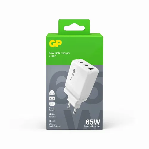 GP Väggladdare GaN PD 65W Inkl Reseadapter
