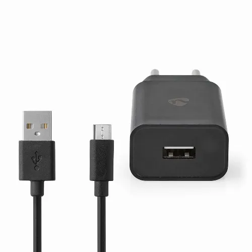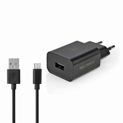 Nedis Väggladdare | 12 W | 1x 2.1 A A | Antal utgångar: 1 | USB-A | Micro USB (Lös) Kabel | 1.00 m | Single Voltage Output | Svart