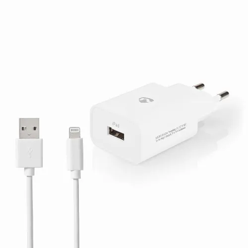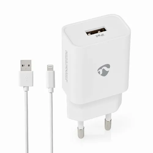 Nedis Väggladdare | 12 W | 1x 2.4 A A | Antal utgångar: 1 | USB-A | Lightning 8-Pin (Lös) Kabel | 1.00 m | Single Voltage Output | Vit