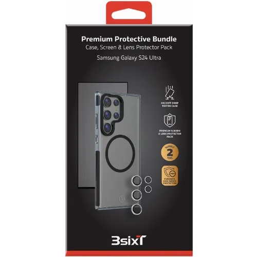 3SIXT 4in1 Protection Bundle mobilskal, skärmskydd, kameraskydd och stressfri applikator, kompatibel med Samsung Galaxy S24 Ultra, transparent