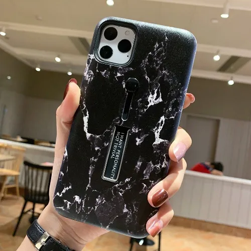 Fashioncase med fingerhållare - iPhone 12 Mini, Svart marmor