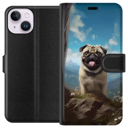 Plånboksfodral till Apple iPhone 14 med Glad Hund motiv