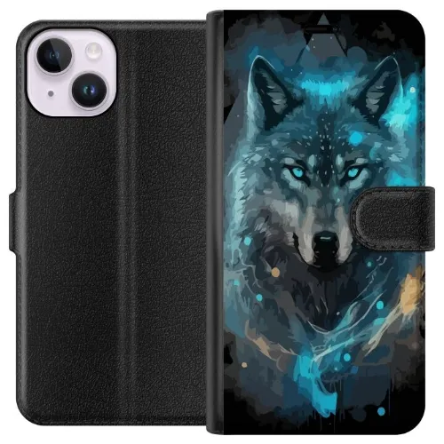 Plånboksfodral till Apple iPhone 14 med Varg motiv