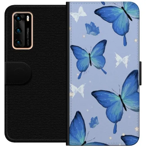 Plånboksfodral till Huawei P40 med Blå fjärillar motiv