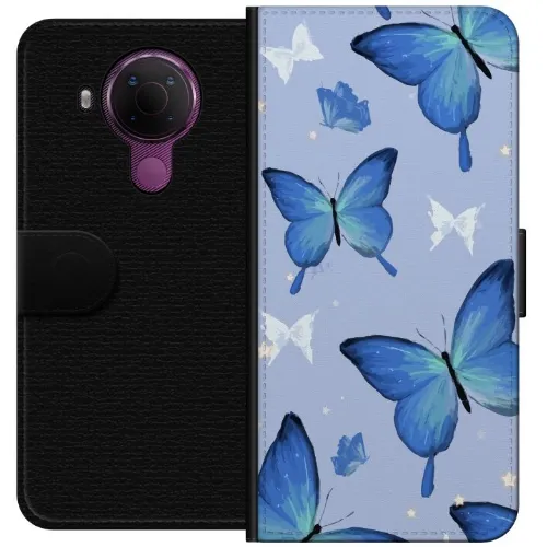 Plånboksfodral till Nokia 5.4 med Blå fjärillar motiv