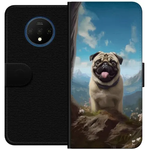 Plånboksfodral till OnePlus 7T med Glad Hund motiv