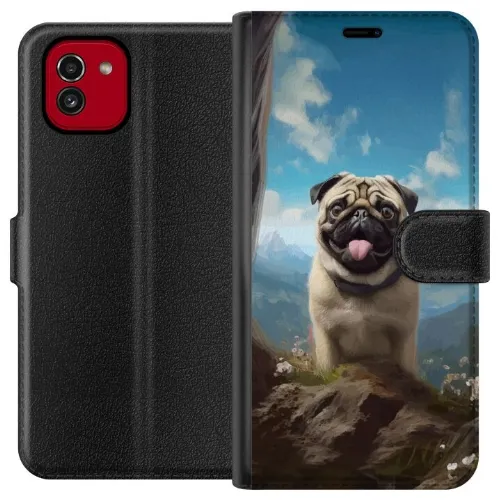 Plånboksfodral till Samsung Galaxy A03 med Glad Hund motiv