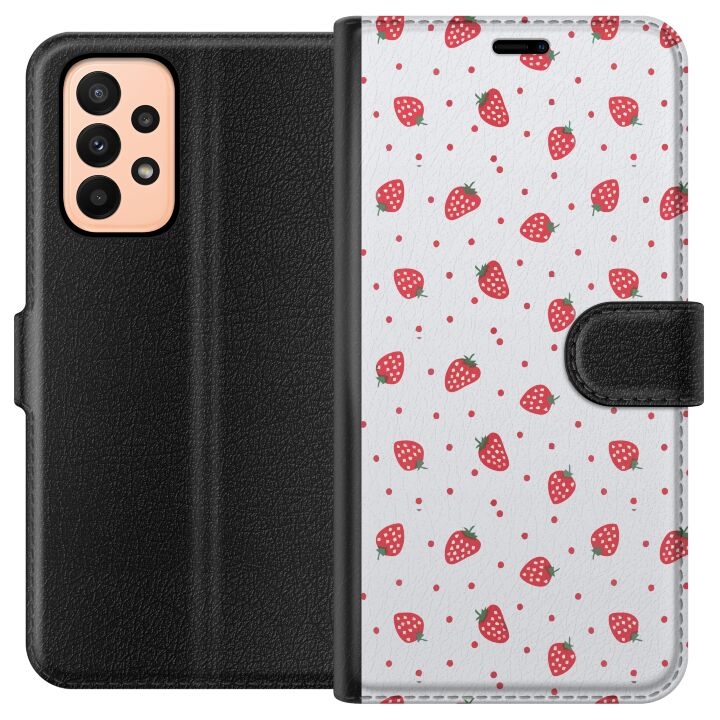 Plånboksfodral till Samsung Galaxy A23 med Jordgubbar motiv