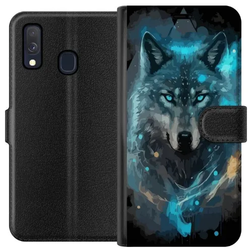 Plånboksfodral till Samsung Galaxy A40 med Varg motiv