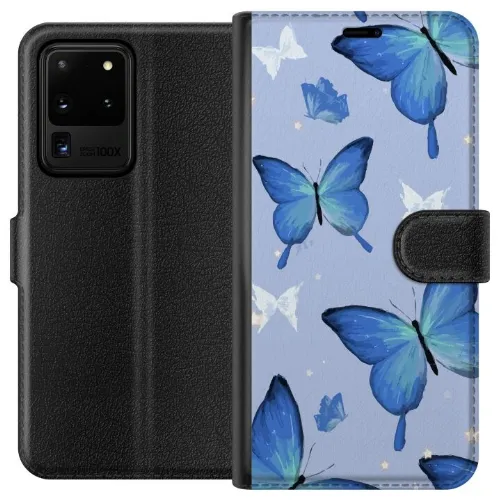 Plånboksfodral till Samsung Galaxy S20 Ultra med Blå fjärillar motiv