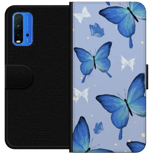 Plånboksfodral till Xiaomi Redmi Note 9 4G med Blå fjärillar motiv