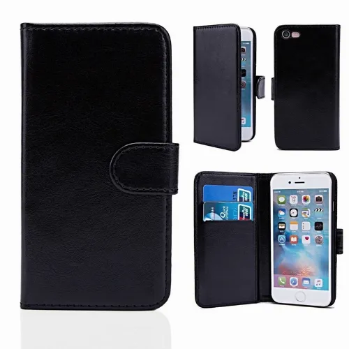 Plånboksväska i konstläder, 2 kortfack till iPhone 7/8/SE, Svart