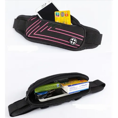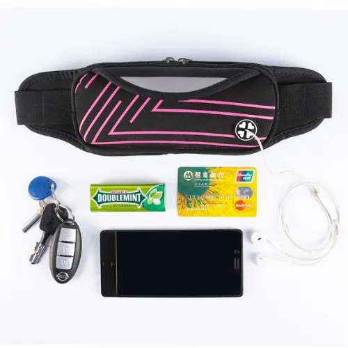 Sportig midjeväska med ränder, Rosa