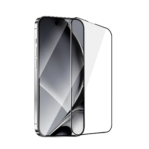Skärmskydd i härdat glas med metallkant, iPhone 16 Pro